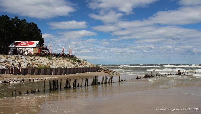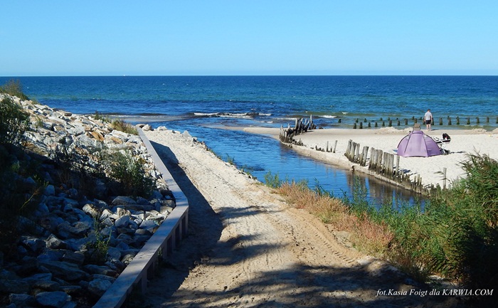 Ujście Karwianki do Morza - w tle popularny Bar Na Górce