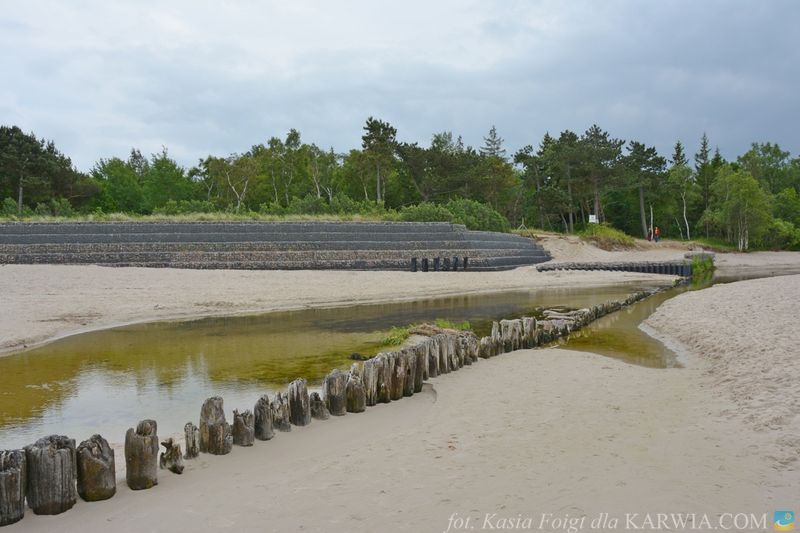 Rzeka o nazwie Czarna Woda wpada do Bałtyku w małej miejscowości Ostrowo, zlokalizowanej między Karwią a Jastrzębią Górą. Jej ujście znajduje się przy wejściu numer 38.