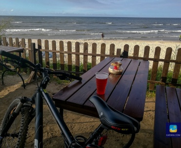 Ścieżka między plażą a lasem. Rowerem można przejechać wzdłuż linii brzegowej.