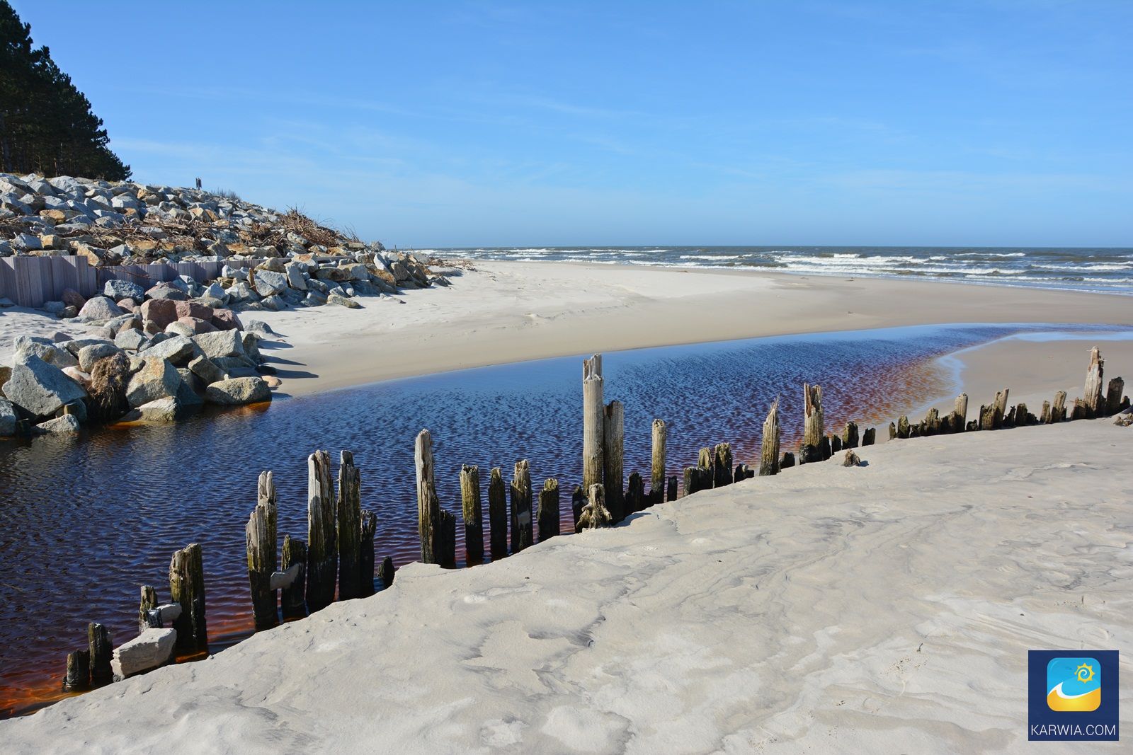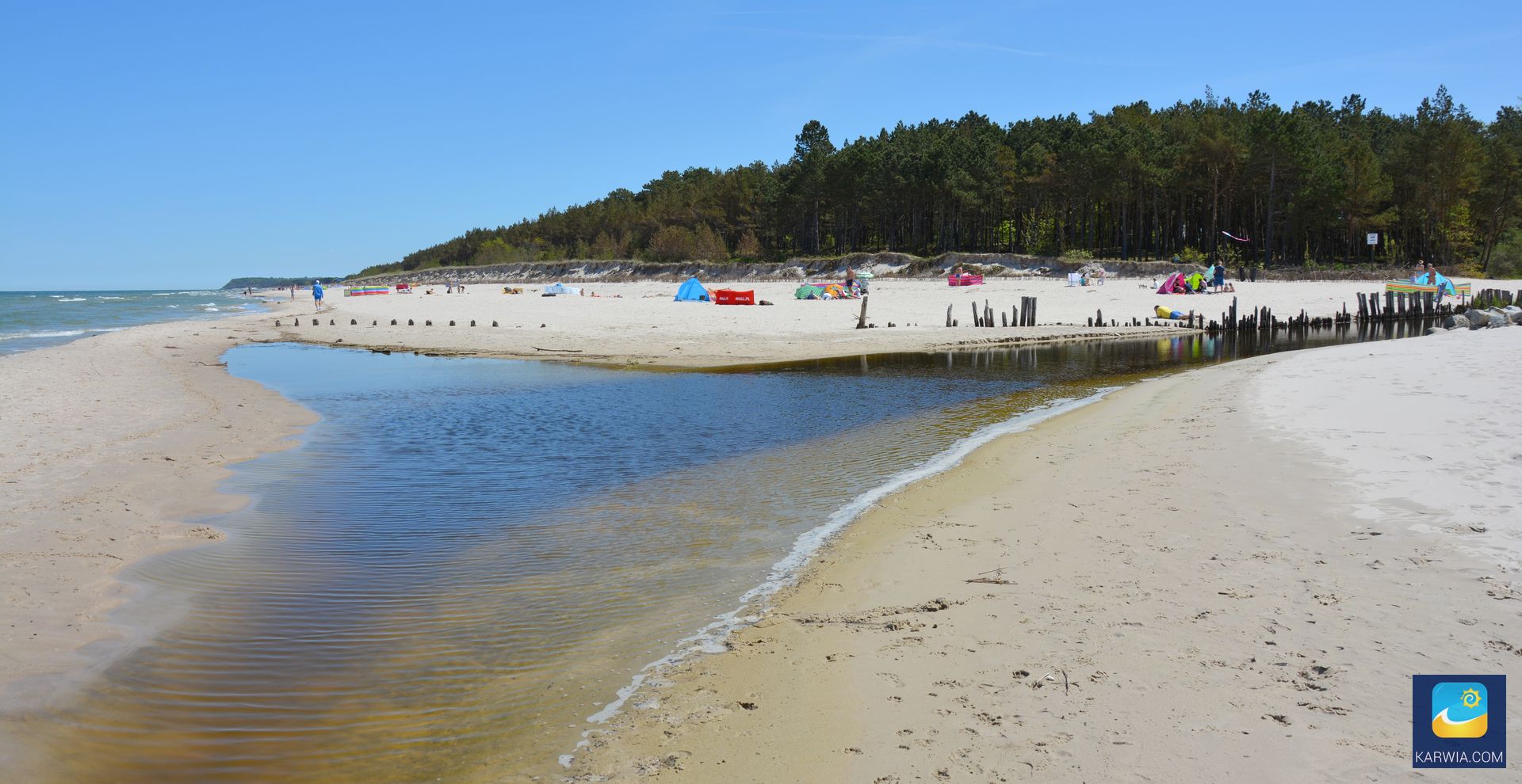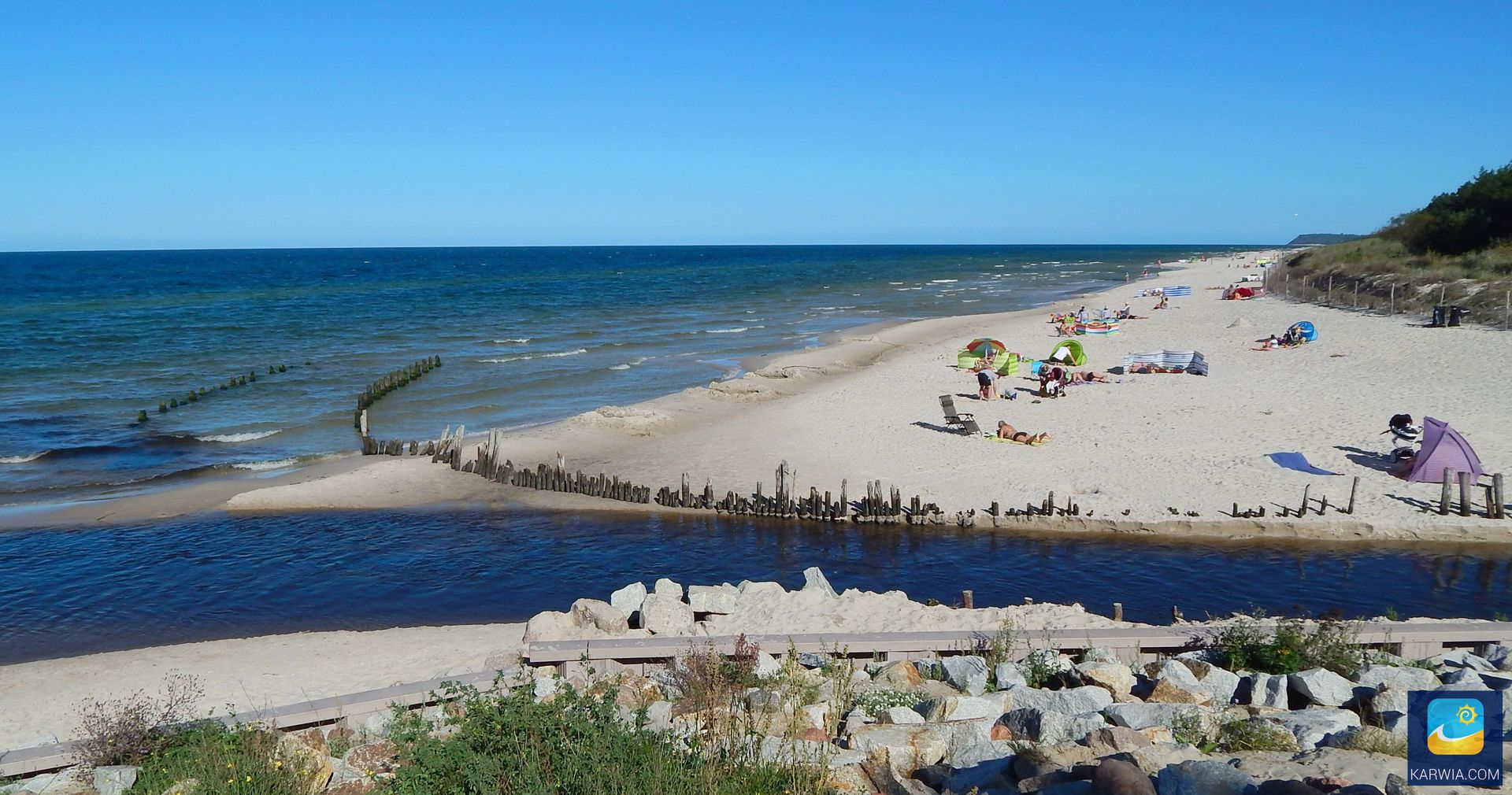 Plaża przy ujściu Karwianki do morza - ulubione miejsce plażowania rodzin z dziećmi.