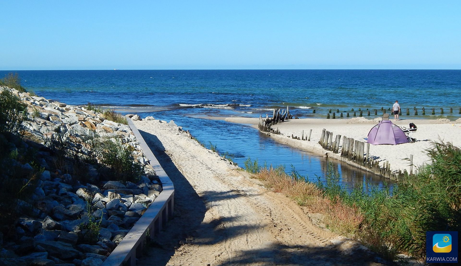 Plażowanie bez tłumów przy ujściu Karwianki do morza.