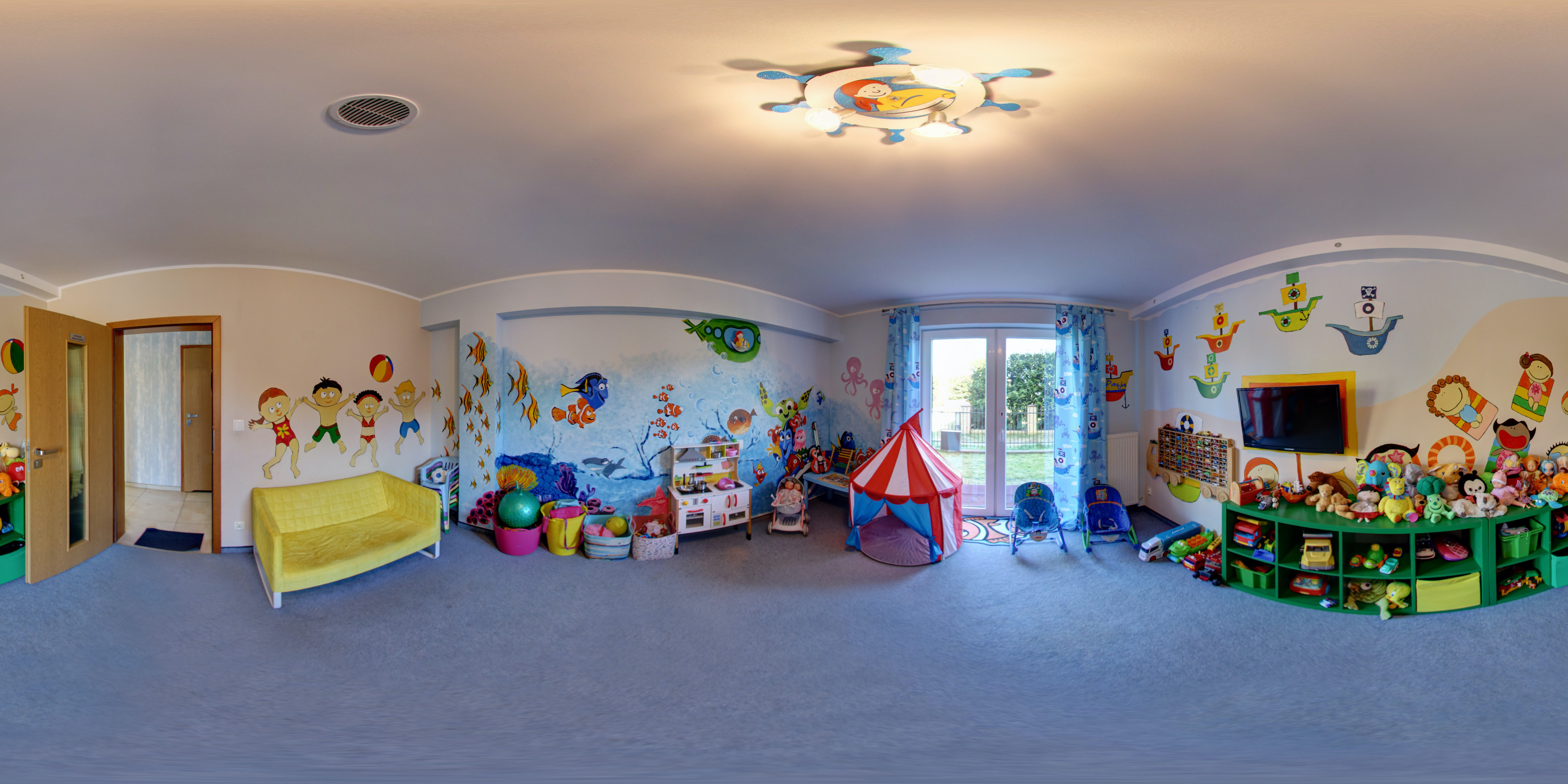 - Również na parterze znajduje się kolorowa bawialnia, pokój zabaw dla dzieci, łazienka dla gości, recepcja oraz pomieszczenie do przechowywania wózków, rowerków i sprzętu plażowego. Obiekt jest zamykany na noc i całodobowo monitorowany, dlatego Ty i Twoje rzeczy będą bezpieczne.